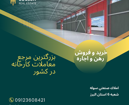 رهن کارخانه ، خرید سالن بهداشتی ، واگذاری زمین صنعتی ، بهره برداری سوله های بلا استفاده ، اجاره انبار ، فروش انبارشرکت تولیدی ، کارگاه انبار بزرگ و کارخانجات فعال با ساختمان اداری و دفتری با کاربری فلزی و کاربری های صنعتی و بهداشتی ، قیمت زمین ، زمین در شهرک صنعتی استان تهران و تمام کشور، مشاوره تخصصی ، احیای واحدهای تعطیل و نیمه تعطیل